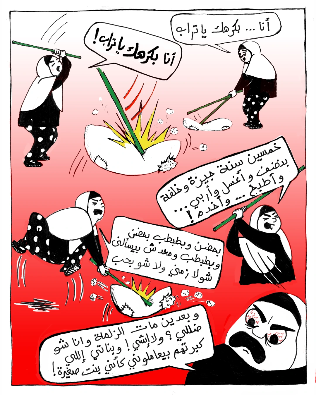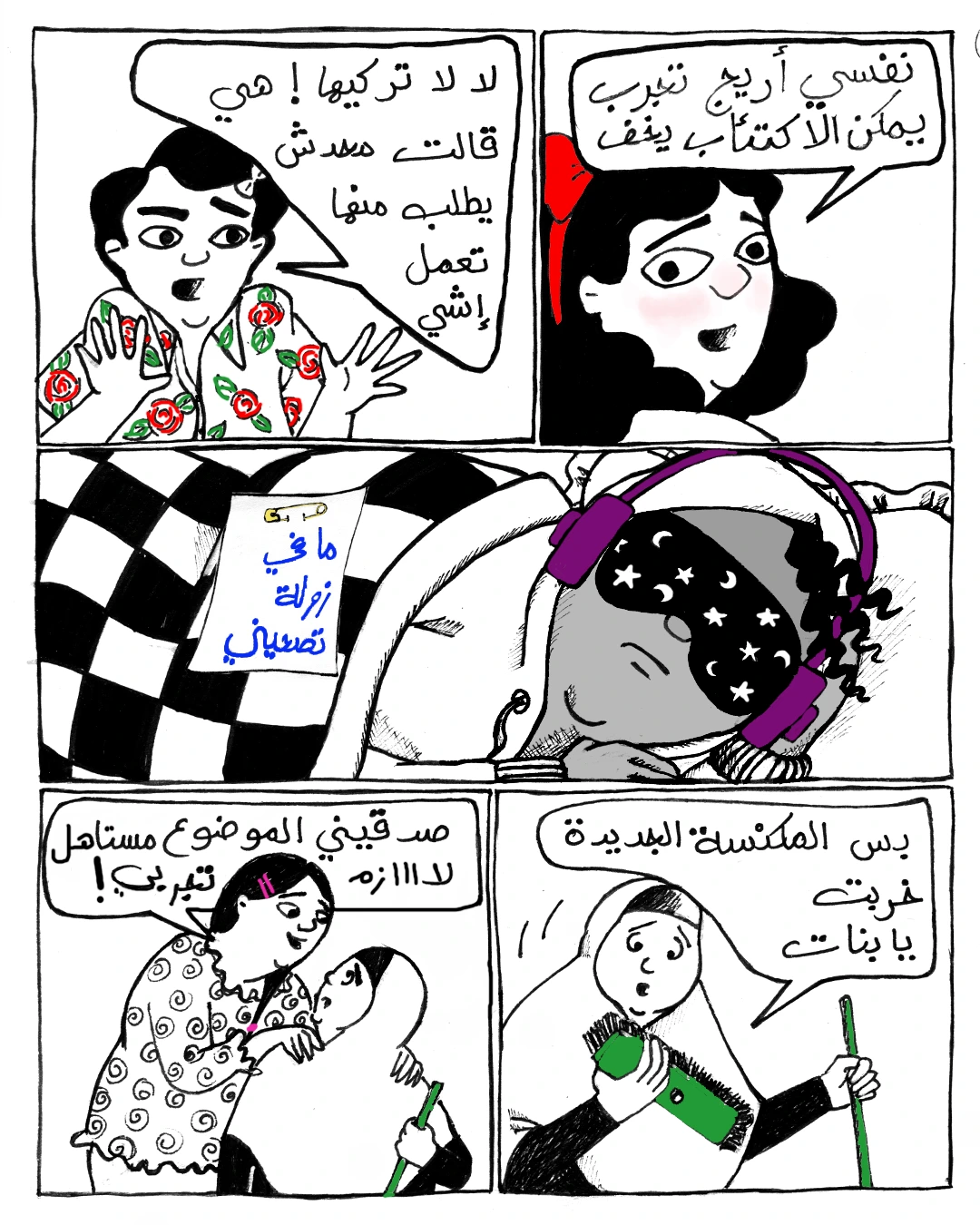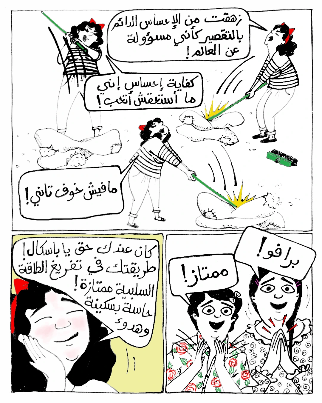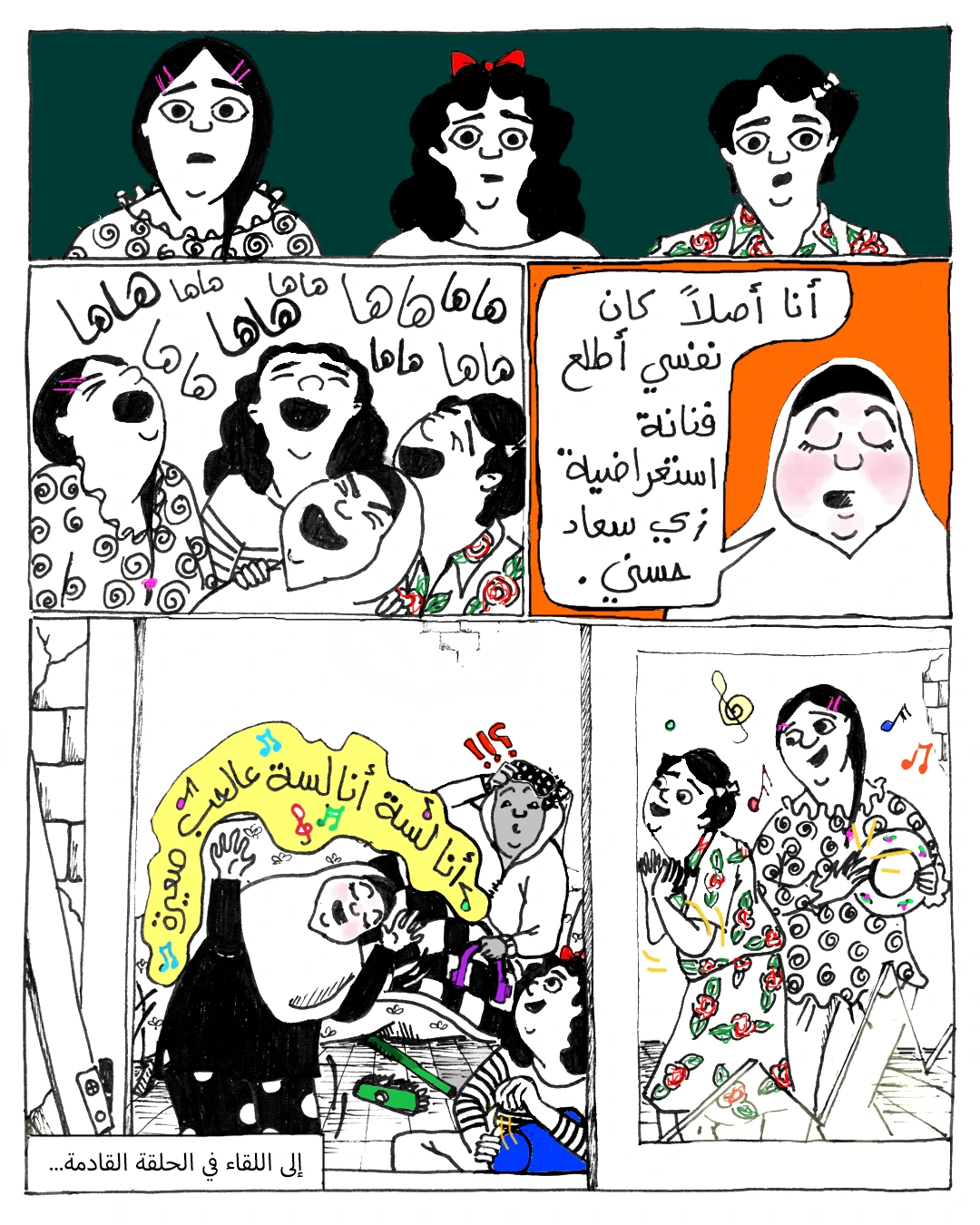 وأثناء إعداد الكومكس، الذي ما يزال مستمرًا، طرحنا سؤالًا حول كيفية تأطير السلسلة نظريًا. ومن هنا جاءت مبادرات موازية: قريبًا ستجدن فيديو مقالي (حلطومة) حول الصحة النفسية بالتعاون مع زوز، إضافةً إلى مقالين؛ يتناول الأول تأثير ثقافة "العافية" على الصحة النفسية للنساء، بينما يناقش الثاني أثر انقطاع الطمث، وقد أعدّتهما رفيقتان لنا كانتا معنا في المخيم النسوي للإنتاج المعرفي المكتوب (وسنعرّفكن بهما قريبًا).