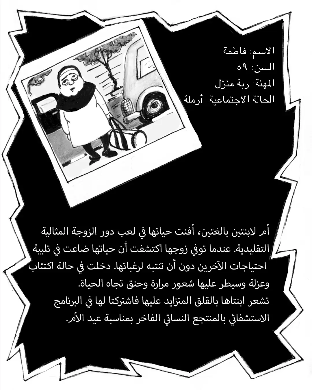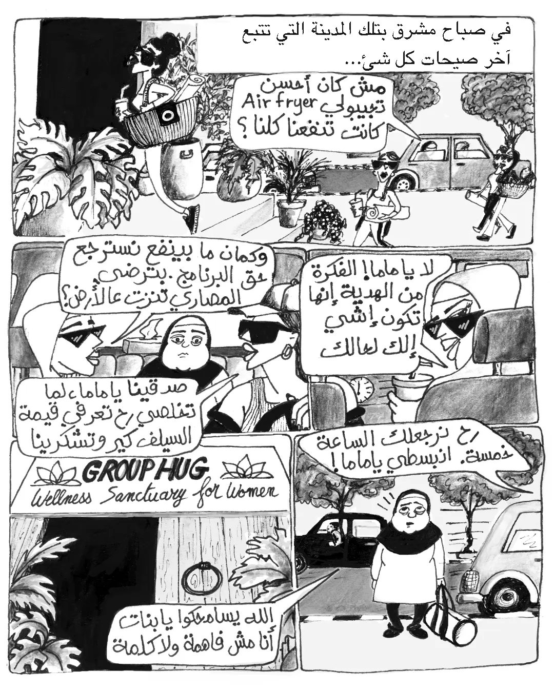 في المرحلة اللاحقة لهذه النقاشات، تواصلنا مع سلمى للعمل على إنتاج سلسلة كومكس تتمحور حول الصحة النفسية، وتحديدًا للنساء العربيات. سلسلة تسعى عن قصد إلى النظر إلى السياق العام الذي نعيش فيه باعتباره جزءًا من الصحة النفسية؛ لذا ستجدن مجموعة من النساء من أعمار وخلفيات وبلدان عربية متنوعة، يلتقين في مدينة عربية غير محددة. كما تسعى السلسلة إلى النظر للصحة النفسية من منظور هؤلاء النساء، منظور لا يحصرها في المؤسسة الطبية ولا يختزلها ضمن ثنائية المرض والعافية.