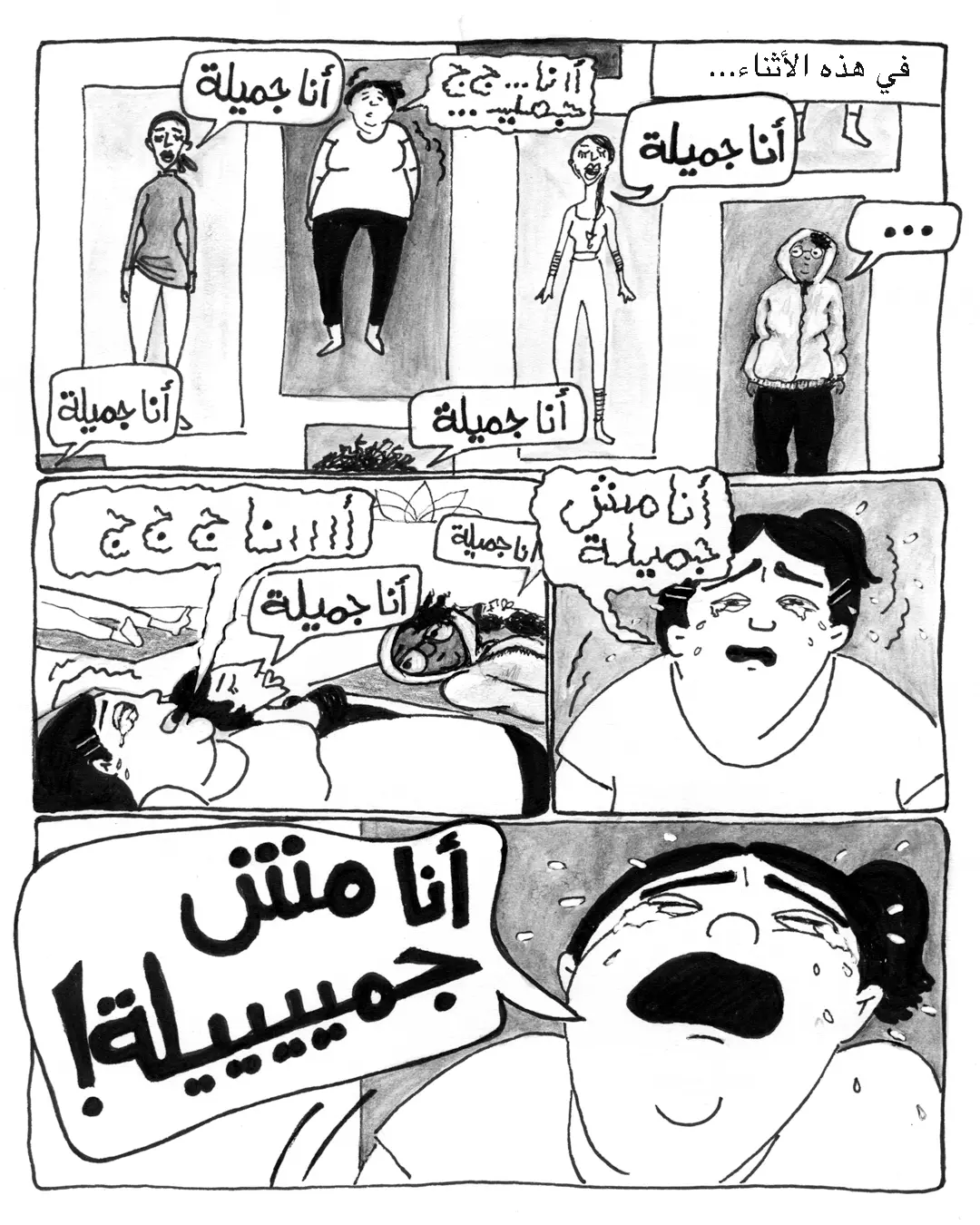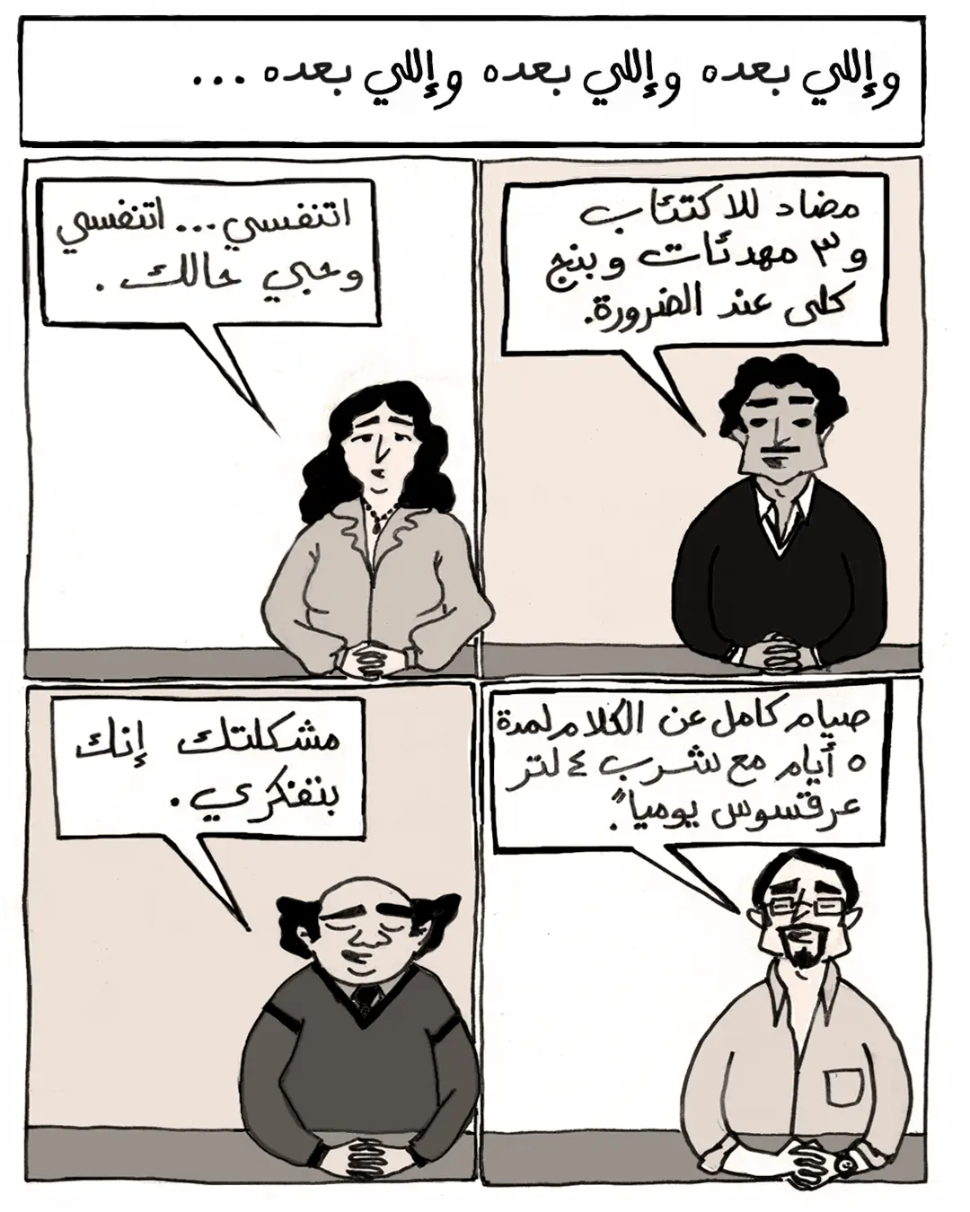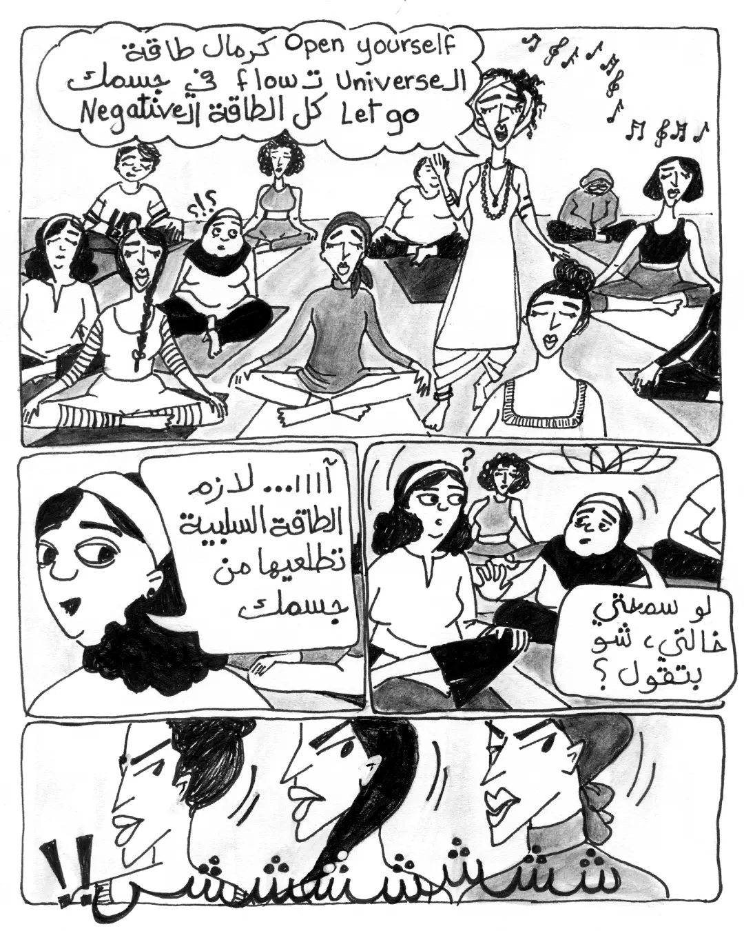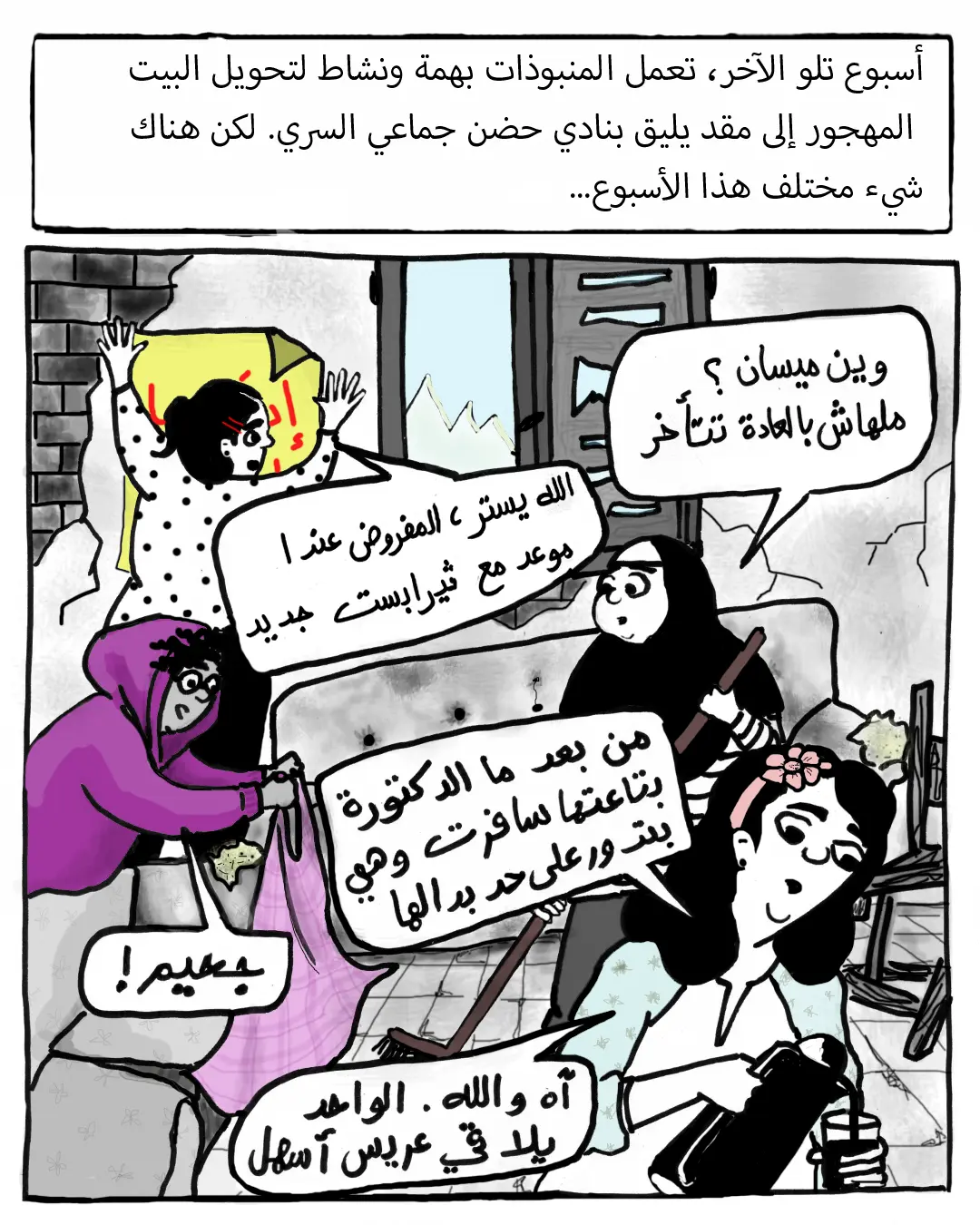 وأثناء إعداد الكومكس، الذي ما يزال مستمرًا، طرحنا سؤالًا حول كيفية تأطير السلسلة نظريًا. ومن هنا جاءت مبادرات موازية: قريبًا ستجدن فيديو مقالي (حلطومة) حول الصحة النفسية بالتعاون مع زوز،إضافةً إلى مقالين؛ يتناول الأول تأثير ثقافة "العافية" على الصحة النفسية للنساء، بينما يناقش الثاني أثر انقطاع الطمث، وقد أعدّتهما رفيقتان لنا كانتا معنا في المخيم النسوي للإنتاج المعرفي المكتوب (وسنعرّفكن بهما قريبًا).
